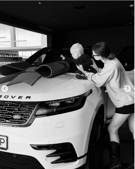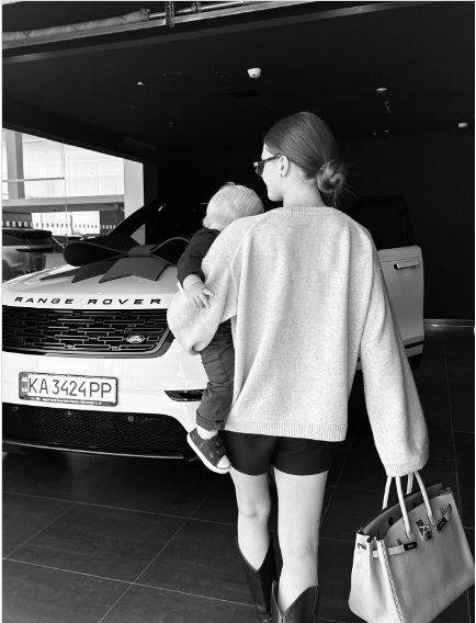 На фото вона разом із сином прямують до Range Rover.