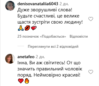 Фолловери побажали Інні та її обранцеві щастя, сказали, які вони гарні, та звернули увагу на собаку.