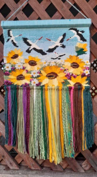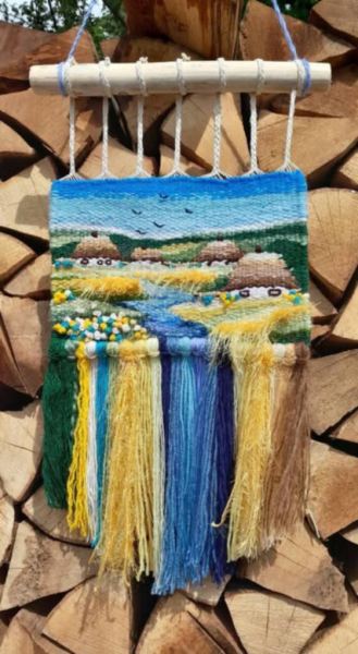 Я завжди любила малювати. З дитинства мене захоплювали пейзажі, квіти, птахи та все, що я бачила навколо. І коли прийшов час обирати, ким я хочу стати, вибір був очевидним – художницею. Я обожнюю ткацтво. Ось гобелен «Село». Він створений з моїх дитячих спогадів. Дитинство в селі особливе. Прохолодна роса огортає ноги вранці. Сонце сходить і заходить, відкриваючи неймовірні краєвиди. Звідусіль чути спів птахів. Ліс і гори ваблять своєю величчю. Я була маленькою дівчинкою, для якої цей світ здавався неймовірно великим і безмежним.
