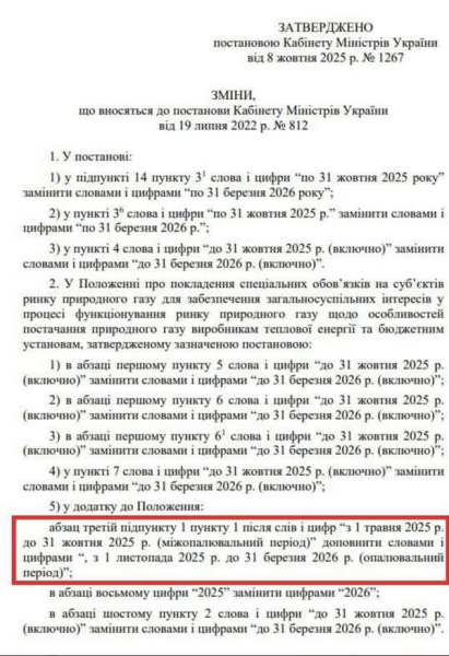 Постанова № 1267 вносить зміни до раніше затвердженої постанови Кабінету Міністрів України від 19 липня 2022 року № 812, яка регулює постачання газу виробникам теплової енергії та бюджетним організаціям.