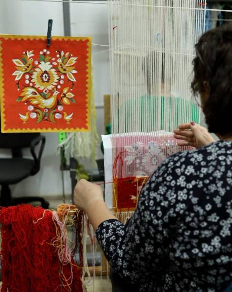 «Сто років тому кожна майстриня хотіла додати щось своє. І зараз так само: основа залишається, але деталі змінюються. Традиція – жива. Але хтось, хто має талант до малювання, привносить свої кольори, малюнки, комбінації символів. Хтось експериментує з іншою пряжею. Хтось – переносить роботи на інші форми, які простіше продати під час економічної скрути: невеликі килимки для подарунків, пояси», – ділиться одна з художниць, не відриваючись від роботи.