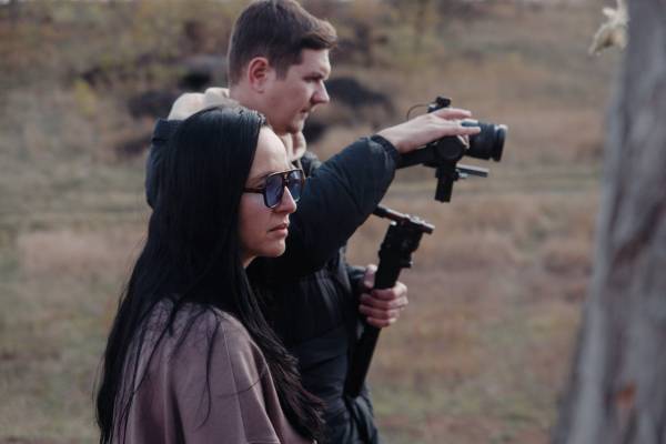 Режисерка Тетяна Станєва і оператор із Дніпра Іван Понамарьов на Покровському напрямку, 2025 р.