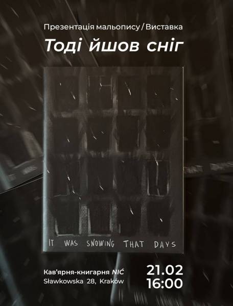 «У Кракові відбудеться виставка та презентація графічного роману «Тоді йшов сніг» української мисткині Лізи Мартін. У ньому зображена історія маріупольця, що намагається вижити в облозі міста», – зазначено в повідомленні.