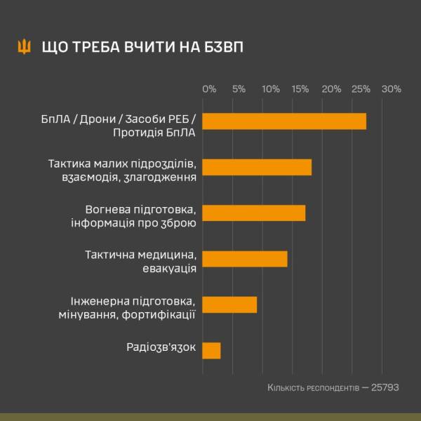 Як поінформували Укрінформ у Командуванні Сухопутних військ ЗСУ, про це свідчать результати дослідження стосовно досвіду отримання БЗВП, яке відбувалося в додатку «Армія+».