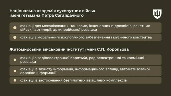 Які фахи можна здобути у військових закладах освіти України – пояснює Міноборони