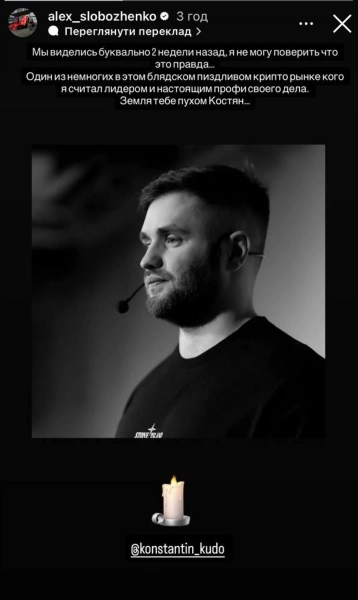 Ми випадково зустрілися два тижні тому, не можу повірити, що це правда. Один з небагатьох на цьому… крипторинку, кого я вважав лідером і справжнім професіоналом у своїй галузі. Земля твоя, Костян.