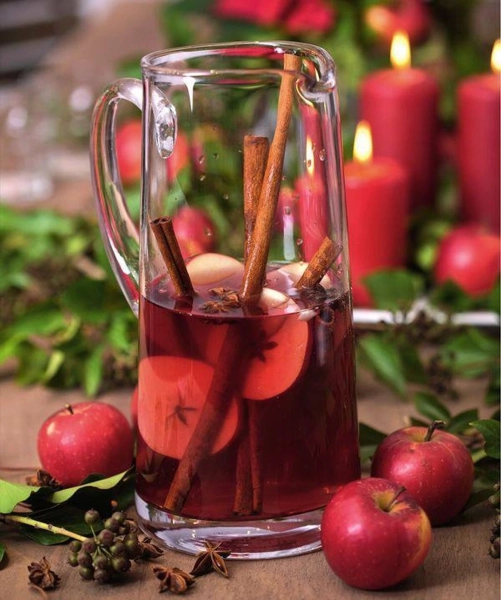Налийте яблучний сік у каструлю. Додайте нарізаний апельсин та яблуко. Додайте палички кориці та гвоздику. Нагрівайте на слабкому вогні 15-20 хвилин, не доводячи до кипіння (щоб спеції випустили свій аромат).
