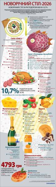 Святкове меню 2026admin31.12.2025Суспільство Новорічний стіл-2026 31.12.2025 07:50 Укрінформ Святковий стіл на рік став дорожчим на 10,7% Згідно з відомостями «Інституту аграрної економіки» Інфографіка Новий рік ціна Продукти Rate this item:1.002.003.004.005.00Submit Rating No votes yet. Please wait...