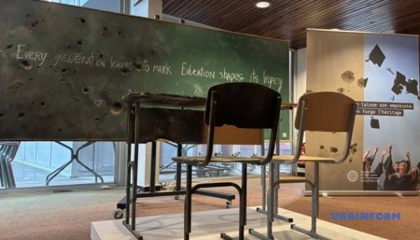 «Школи зазнають пошкоджень і руйнувань. Але Україна не припиняє боротьбу і продовжує створювати умови для дітей. Сьогоднішня виставка сфокусована навколо символічного образу – шкільної парти, розділеної на дві частини. Цей образ віддзеркалює реальність України. Парта стала уособленням подвійної спадщини нашого часу – знищення та стійкості», – заявив Точицький.
