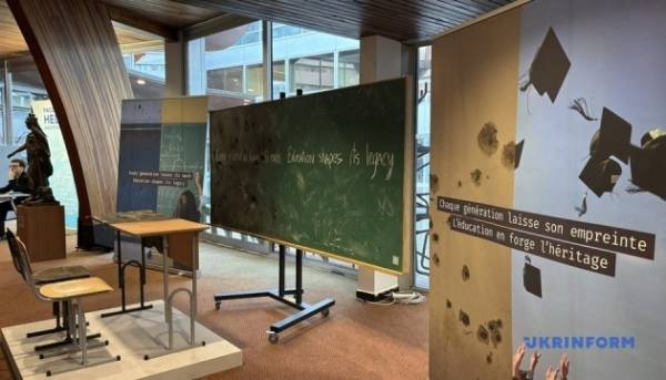 У Раді Європи виставили понівечену війною шкільну парту з України / Фото: Лідія Таран. Укрінформ