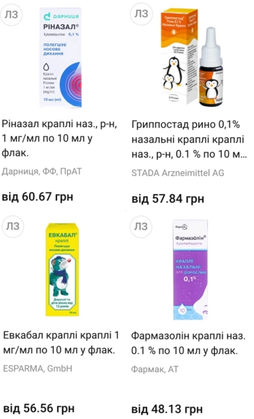 Навіть на звичайних судинозвужувальних краплях для носа можна виграти – ціна крапель «Риназал» від бренду «Дарниця» починається від 60,67 грн, тоді як аналог «Фармазолін» від «Фармак» коштує 48,13 грн. Різниця становить 12,54 грн.