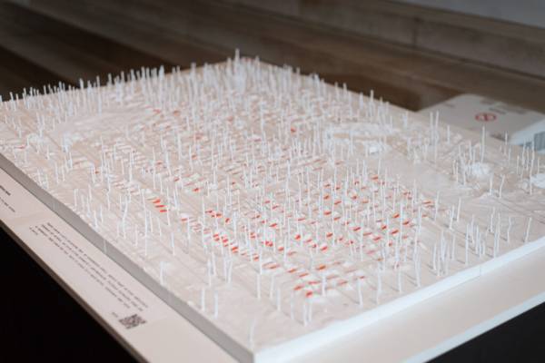 Підкреслюється, що експозиція показує цифрові дані, зібрані в результаті документування наслідків війни в Харківській області, яка з 2022 року перебувала під тривалою загрозою військових дій, загарбання та бойових зіткнень.