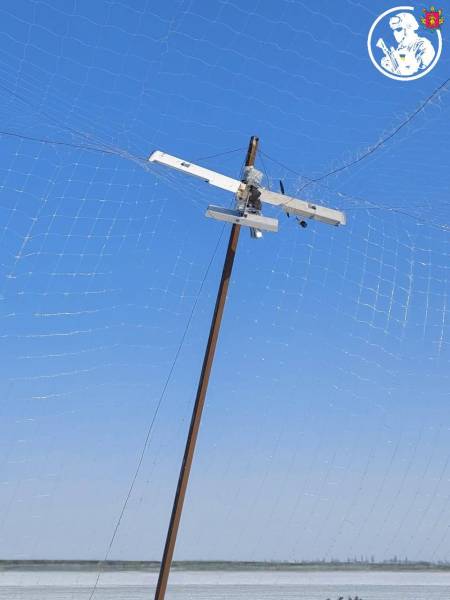 Глава Запорізької ОВА Іван Федоров оприлюднив у своєму Телеграм знімки, на яких видно безпілотник «Молнія», що застряг в сітці, повідомляє Укрінформ.