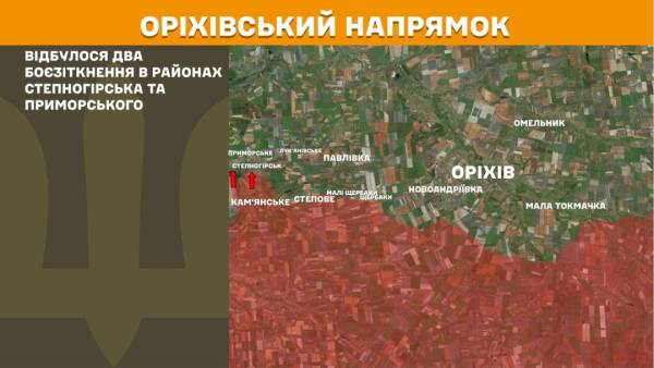 На Оріхівському напрямку відбулися два бойових зіткнення в районах Степногірська та Приморського.